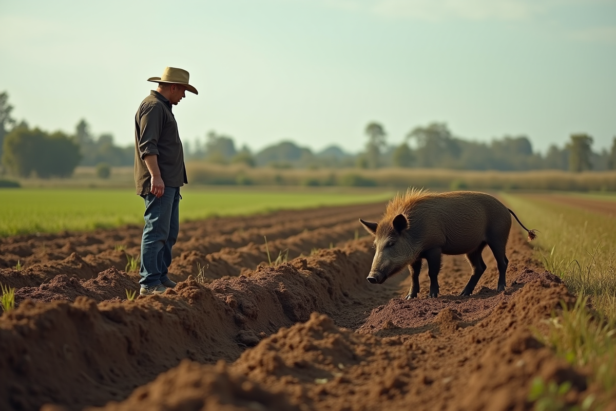 Les sangliers, omnivores et opportunistes, causent des dommages significatifs en milieu rural. Ces animaux fouissent le sol à la recherche de nourriture, détruisant ainsi les cultures et les récoltes. Les champs de maïs, de blé et de pommes de terre sont particulièrement vulnérables.